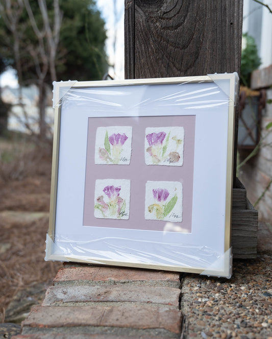 ACRYLIC Magnetized frames with HAND HAMMERED BOTANICAL art on handmade deckled edge paper